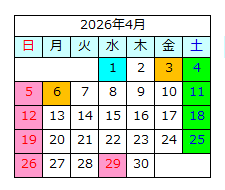 サイド開館カレンダー